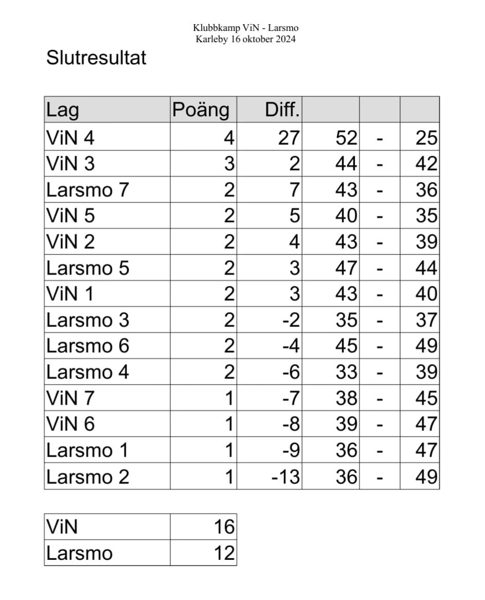 LAGTÄVLING RESULTAT