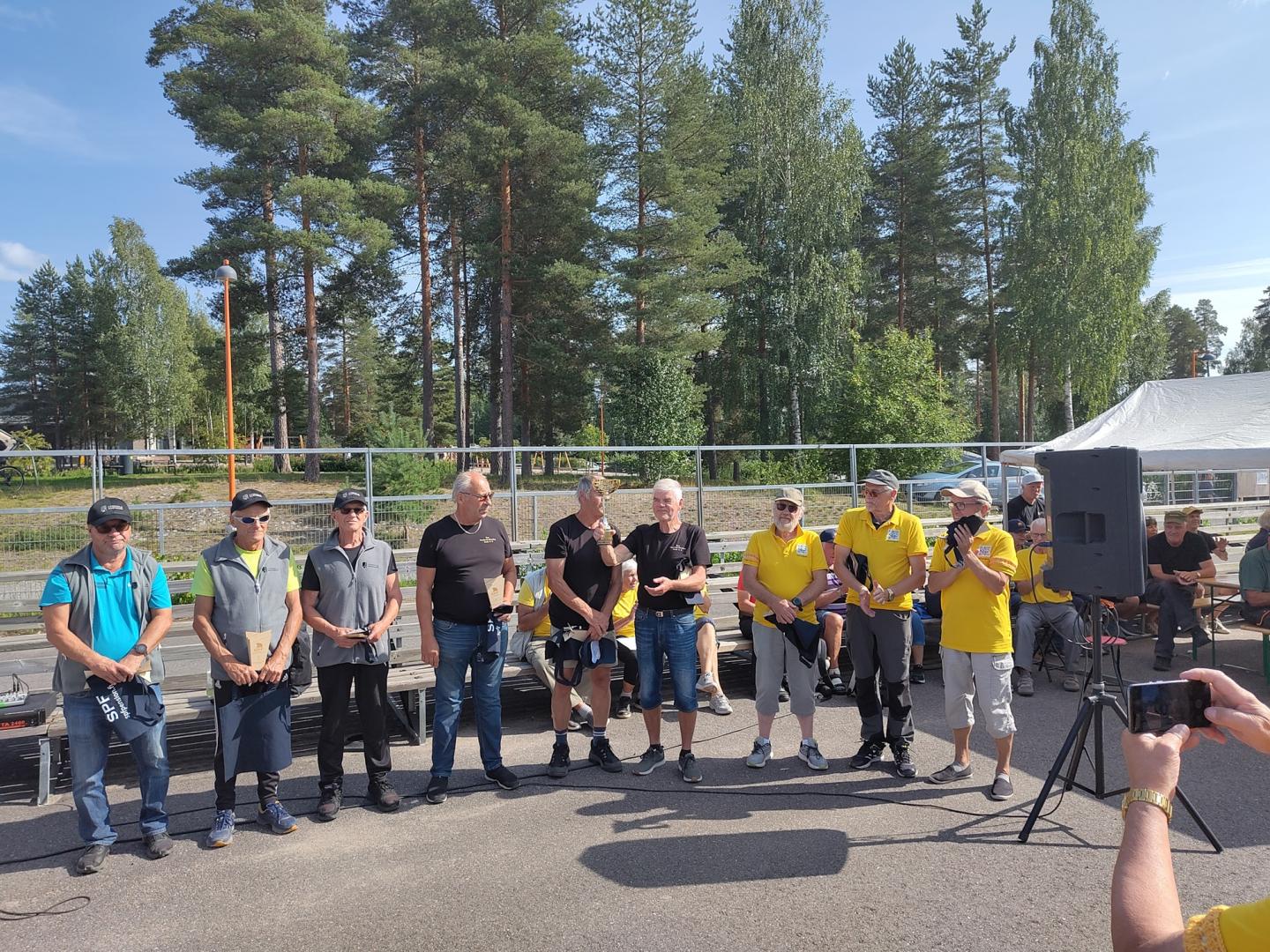 Kronoby pensionärer var väl representerat i årets turnering. Här poserar de tillsammans med några representanter för Vi Norrifrån (Bild: Mikael Tuomisalo)