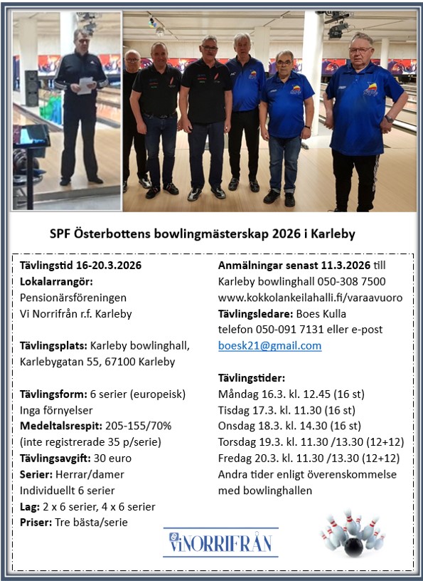 SPF Österbottens bowlingmästerskap 2026 i Karleby